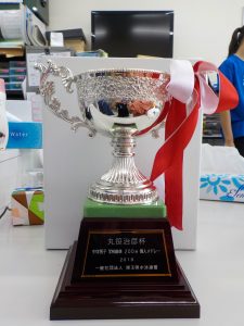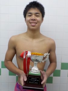 200m個人メドレーで優勝した記念杯として、丸笹杯を授与されました!