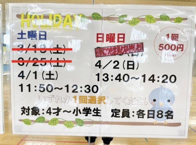 この投稿をInstagramで見る スウィン熊谷(@swin_kumagaya)がシェアした投稿 こんにちは!!体験会のお知らせです🎶3/25(土)11:50~12:00で体験会をおこないます定員まであと2名です‼️新学 […]