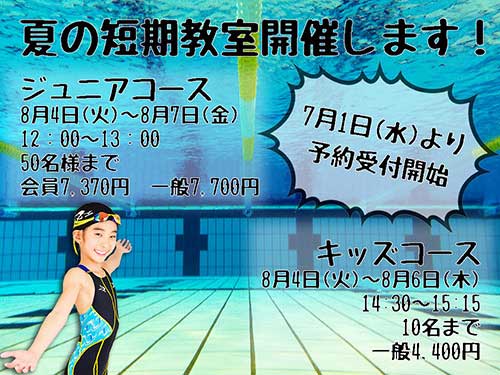 夏の短期教室のお知らせ