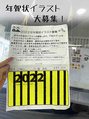 もしかしたら皆さんの書いたイラストが、スイミングから届く年賀状になるかもしれません!