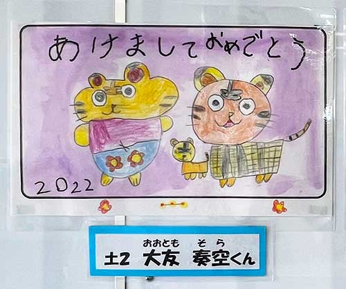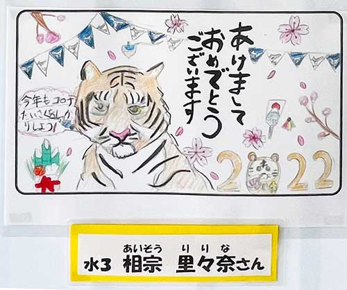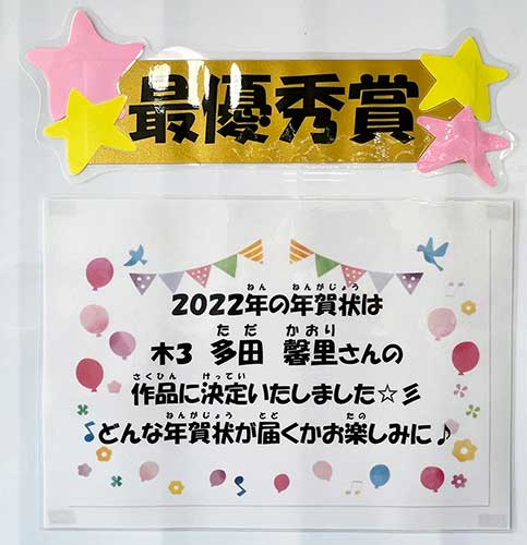 少し前からフロント前に2022年ねんがじょうイラスト募集の入賞作品が貼りだしてあるのはご覧いただけたでしょうか。