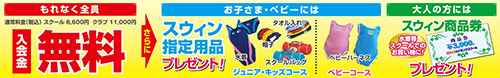 大人の方には、スウィンで使える商品券3,000円分がプレゼントです。