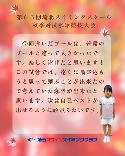 第65回埼北スイミングスクール秋季対抗水泳競技大会★間明田 佳子 さん★