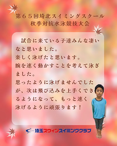 第65回埼北スイミングスクール秋季対抗水泳競技大会★吉村 晃さん★
