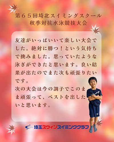 第65回埼北スイミングスクール秋季対抗水泳競技大会★細井 寿人さん★