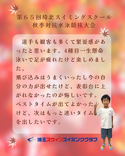 第65回埼北スイミングスクール秋季対抗水泳競技大会★三澤 架弦さん★