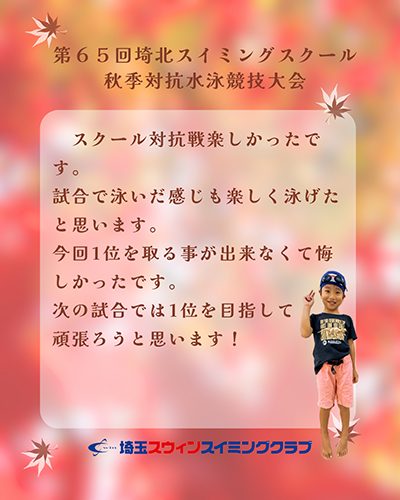 第65回埼北スイミングスクール秋季対抗水泳競技大会★須藤 翼さん★