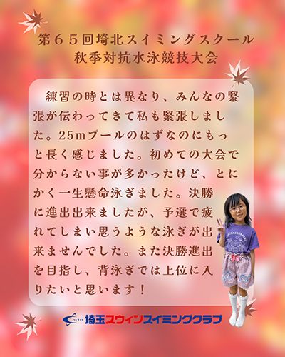 第65回埼北スイミングスクール秋季対抗水泳競技大会★渡辺 紗央さん★