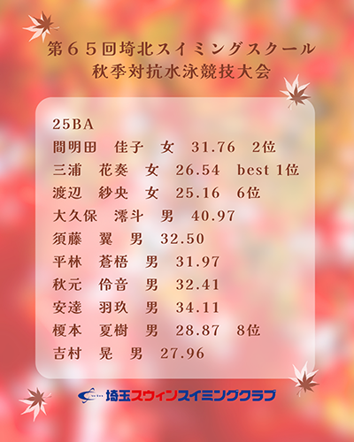 第65回埼北スイミングスクール秋季対抗水泳競技大会