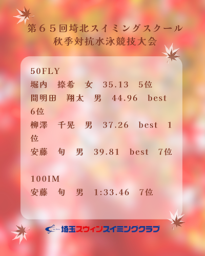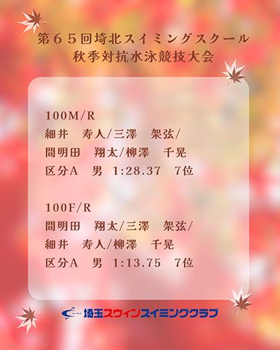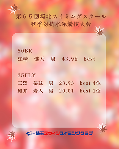第65回埼北スイミングスクール秋季対抗水泳競技大会