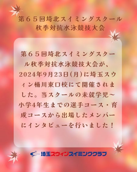 第65回埼北スイミングスクール秋季対抗水泳競技大会