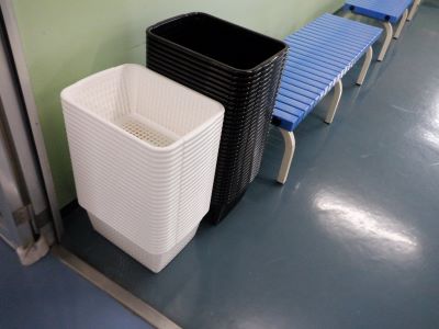 男子更衣室では空いているスペースに荷物を置いておりましたが、カバンの移動や忘れ物等防止のため、荷物を入れるカゴを用意致しました!