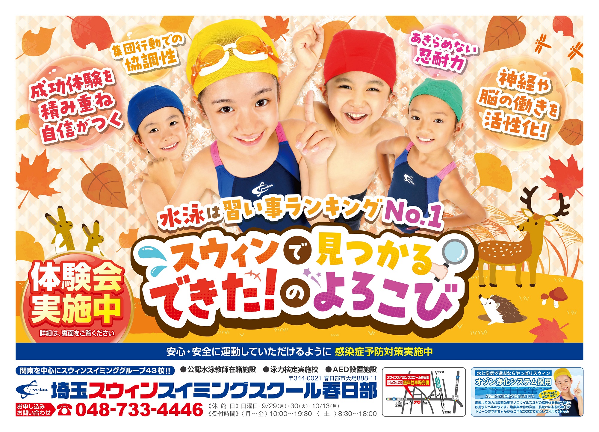 埼玉スウィン春日部校 2018.02.072025.09.24 2025年7月~12月のスケジュール表はこちらから! 今年最後の入会キャンペーン実施中!10月28日(火)まで始めるチャンス!水泳を始めよう!↓裏面内容はチラシをクリック↓ バス運転手募集中!詳しくは↑ここをクリック! 更新情報 2025年9月24日 NEW! 埼玉スウィン春日部校 2025年9月19日 イベント情報 2025年7月23日 暑い夏はプールで泳ごう!@インスタ 2025年6月14日 短期教室 2025年6月3日 2025.5.25(日)マスターズ大会! 2025年6月2日 お得な入会キャンペーン☆ 2025年5月28日 入会キャンペーン実施中(^^)/ 埼玉スウィンスイミングスクール春日部校 〒344-0021 埼玉県春日部市大場888-11 TEL:048-733-4446 FAX:048-733-4447