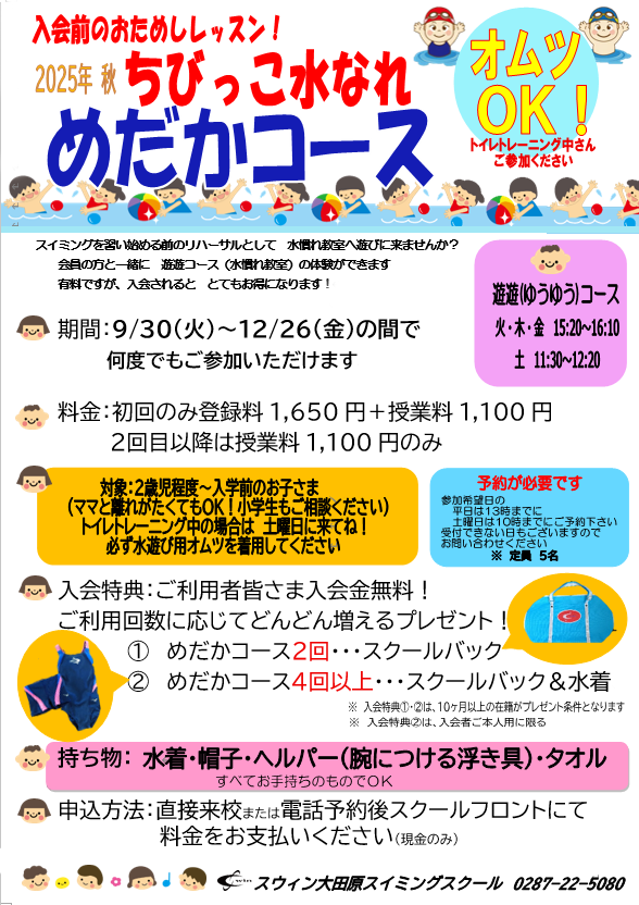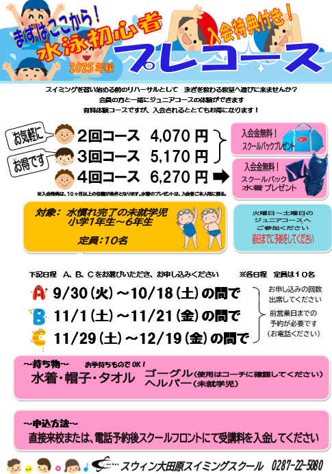 2025.04.05 プレコースとめだかコースのご案内PDFを更新致しました