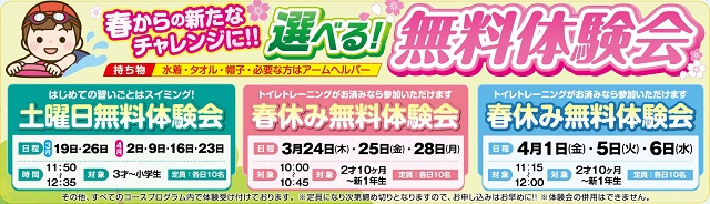 [contact-form subject="選べる無料体験会申込"][contact-field label="名前" type="name" required="1"][contact-field label="フリガナ・性別" type="name" required="1"][contact-field label="TEL" type="text" required="1"][contact-field label="選べる無料体験" type="checkbox-multiple" required="1" options="土曜日無料体験会,春休み無料体験会3月,春休み無料体験会4月"][contact-field label="ご希望の日程" type="date" required="1"][/contact-form]