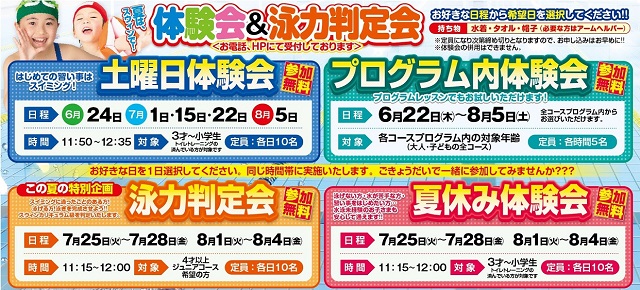 泳力判定会後ご入会いただくと・・・入会金免除+水泳用品一式プレゼント!