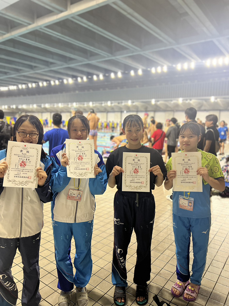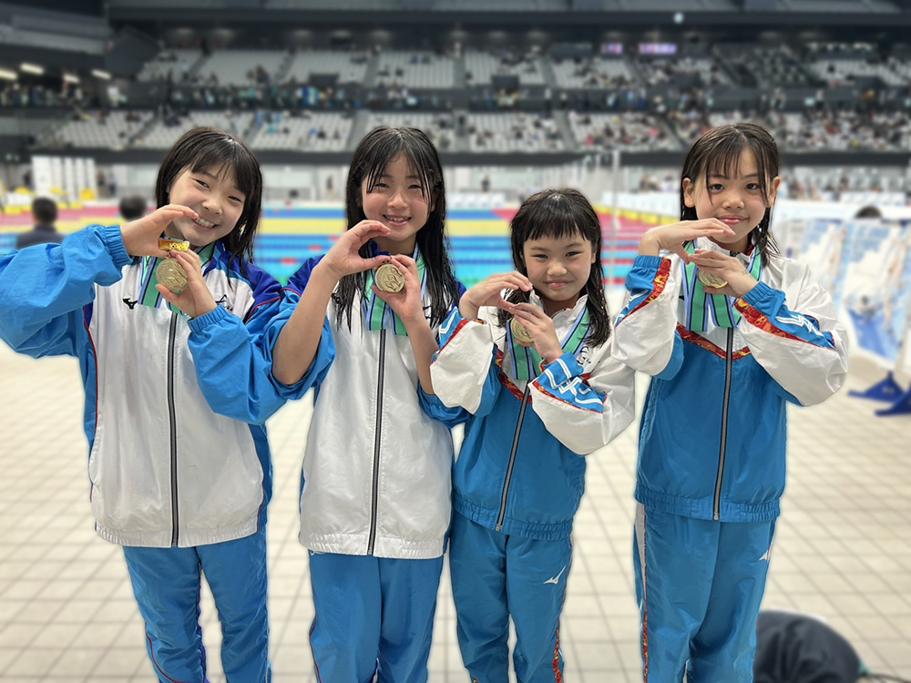 10歳以下女子メドレーリレー 濱野杏梨・山本芽依・三川星來・皆川紗菜