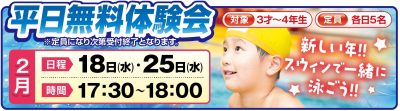 お水が苦手なお子様も大歓迎!夕方限定の体験会です。