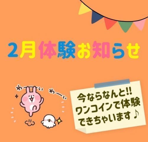 こんにちは✨今回は体験のお知らせです!今ならなんと500円(税込)で体験できます😊 1日体験会対象:4才〜小学生定員:各日8名2/26(日)13:40~14:203/5(日)13:40~14:20初めてのお子様だけの体験 […]