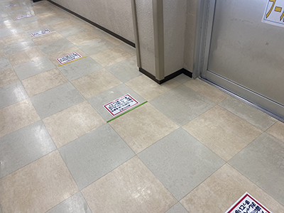 ③ジュニアコース授業前の待機場所でのソーシャルディスタンス確保