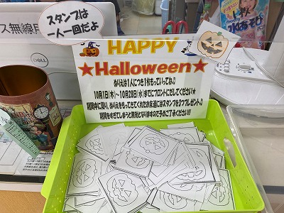 ☆かぼちゃに色を塗って持ってきてくれたお友達にスタンプを3つプレゼントしています☆