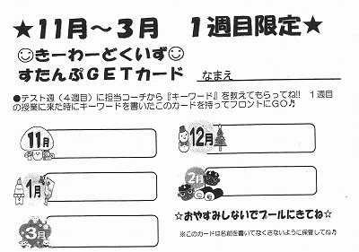 来月11月から3月までの期間で、『1週目限定キーワードクイズ』を実施します!