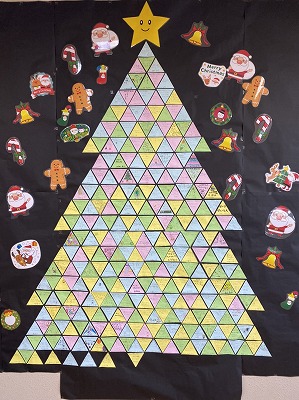 スウィン熊谷では子ども達に2021年の目標を書いてもらった△の紙を貼って