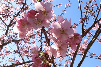 こちらは河津桜(カワヅザクラ)という早咲きの桜です! まだ4,5分咲きくらいで満開ではなかったですが、とても綺麗で癒されました。 見た目にも特徴があり、一般的な桜の品種である染井吉野(ソメイヨシノ)よりも花が大きく、濃いピンク色になるようです。雨や風が強くても花が無くなっていることがあまりなく、開花の時期が2月中旬から3月中旬ごろと花期が長いので、ソメイヨシノに比べて見逃してしまうことが少ないそうです。
