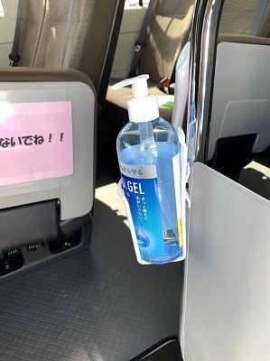 バスに乗降する時、スイミングの入退館の時には消毒のご協力をお願い致します。