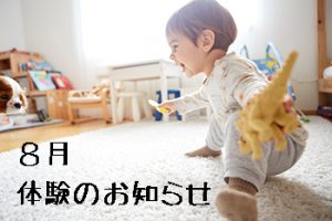 8月の体験のお知らせです。 8月 3日(土) 16:30~17:15 15名まで 8月 4日(日) 14:30~15:15 10名まで 8月24日(土) 16:30~17:15 15名まで 8月25日(日) 14:30~ […]