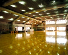 本格的な設備の体育館。スプリング内蔵の床で、ひざや腰への負担を軽減します。