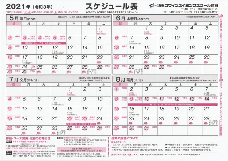 2021年 5~8月スケジュール表