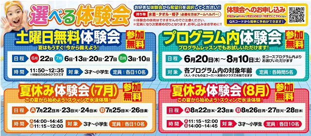 体験後ご入会いただくと・・・入会金免除+水泳用品一式プレゼント!