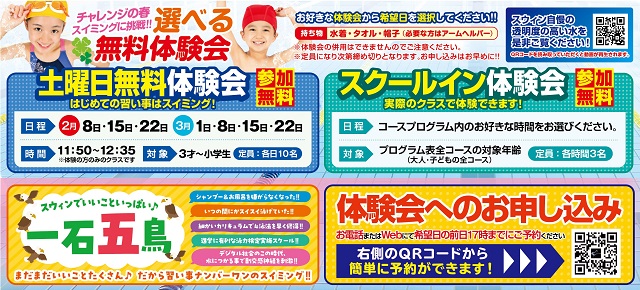 体験後ご入会いただくと・・・入会金免除+水泳用品一式プレゼント!
