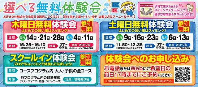 体験後ご入会いただくと・・・入会金免除+水泳用品一式プレゼント!